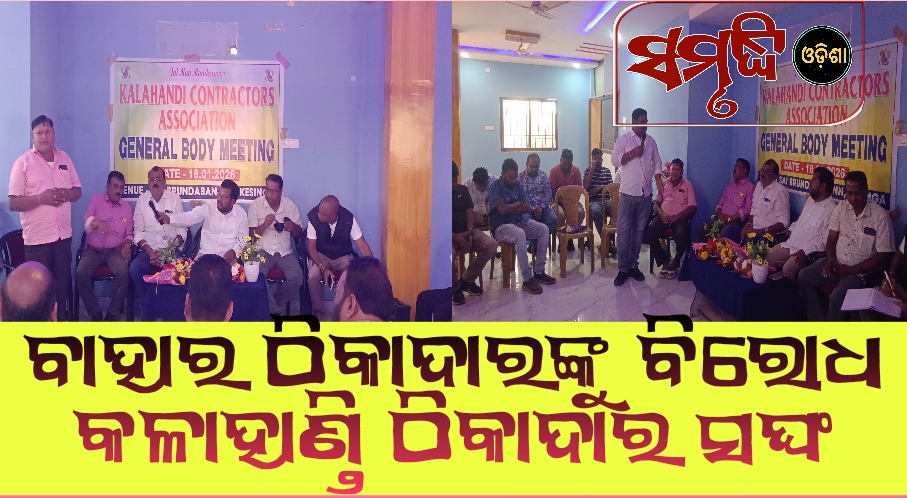 ବାହାର ଠିକାଦାରଙ୍କୁ ବିରୋଧ କଳାହାଣ୍ଡି ଠିକାଦାର ସଙ୍ଘ